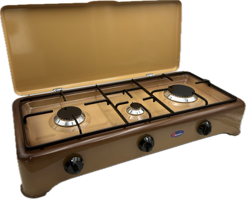CFParker Fornello 3 Fuochi a Gas Gpl / Metano con Valvola di Sicurezza Sfumato Marrone - 5328SFGPS